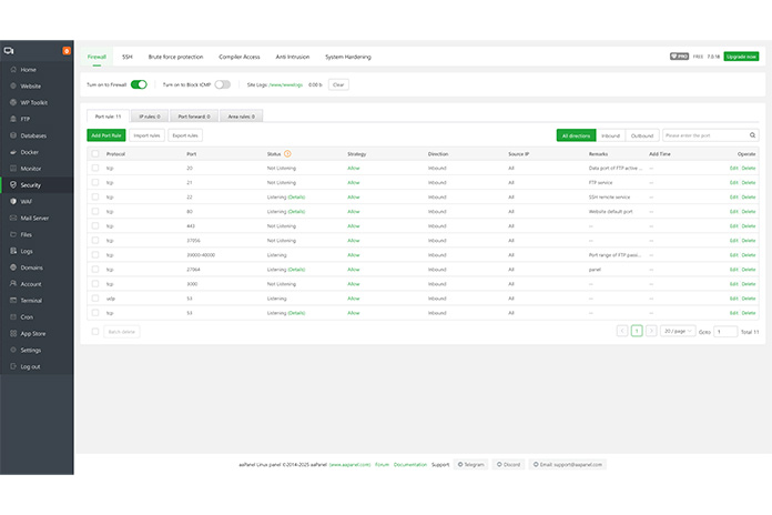 aapanel یک پنل مدیریت سرور لینوکس رایگان و قدرتمند است که کار مدیران سیستم را بسیار آسان کرده است. یکی از قابلیتهای برجسته این پنل، رابط کاربری ساده و کارآمد آن برای مدیریت فایروال است. با استفاده از این پنل، دیگر نیازی به حفظ کردن دستورات پیچیده خط فرمان ندارید.